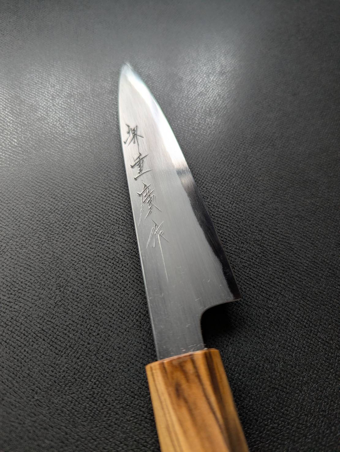 EN: 12cm petty knife. Shirogami white carbon steel 2. Japanese olive wood handle.